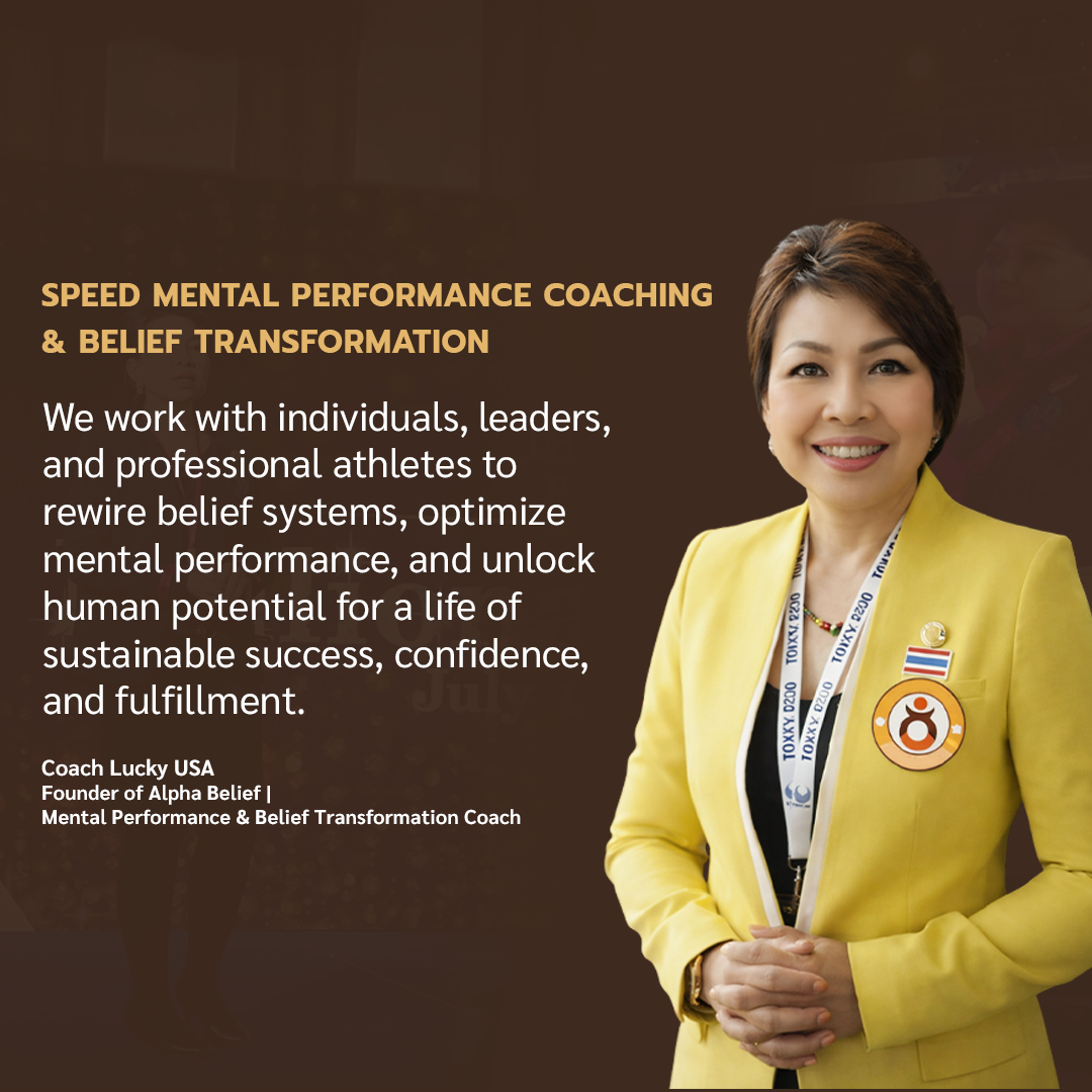 Flg. Off. Nichapa Jindawit (Coach Lucky USA) is the Founder and CEO of Alpha Belief and a Mental Performance Coach specializing in rapid belief transformation and high-performance leadership.